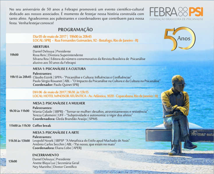 Federação Brasileira de Psicanálise comemora 50 anos e realiza evento