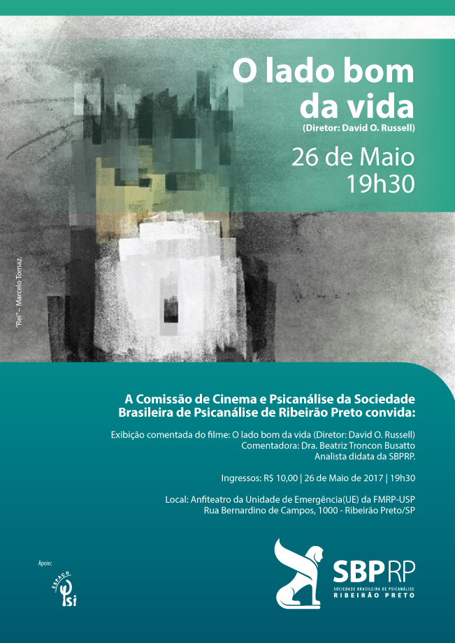 Nesta sexta-feira, dia 26 de maio, às 19h30, o Cinema e Psicanálise de Ribeirão Preto irá apresentar o filme “O lado bom da vida” (2012), do diretor David O. Russell. Os comentários serão da psicanalista Dra. Beatriz Troncon Busatto, membro efetivo com funções didatas da SBPRP.