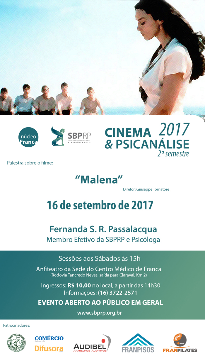 Neste próximo sábado, dia 16, o Cinema e Psicanálise de Franca irá apresentar “Malena” (2001), do diretor Giuseppe Tornatore. Os comentários serão de Fernanda S. R. Passalacqua, membro efetivo da SBPRP.