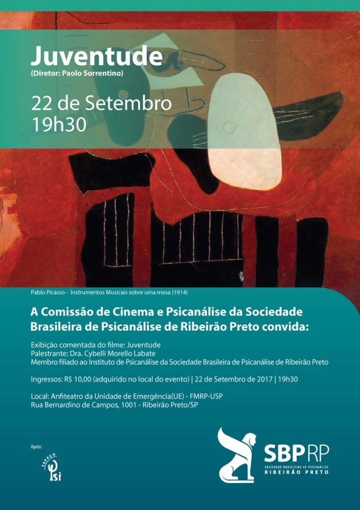 O Cinema e Psicanálise de Ribeirão Preto irá apresentar o filme “Juventude” (2016), do diretor Paolo Sorrentino. Os comentários serão da Dra. Cybelli Morello Labate, membro filiado da SBPRP.