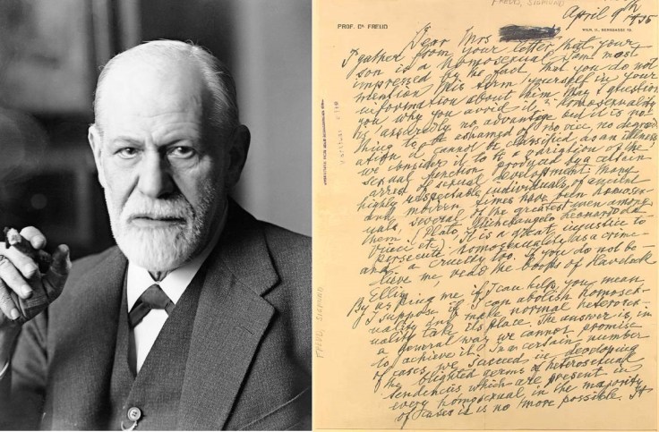 Em 1935, Freud respondeu à carta de uma mãe americana, que solicitava a ele se haveria tratamento para seu filho homossexual. Freud lhe escreveu: “A análise pode fazer outra coisa pelo seu filho. Se ele estiver experimentando descontentamento por causa de milhares de conflitos e inibição em relação à sua vida social a análise poderá lhe proporcionar tranquilidade, paz psíquica e plena eficiência, independentemente de continuar sendo homossexual ou de mudar sua condição.”