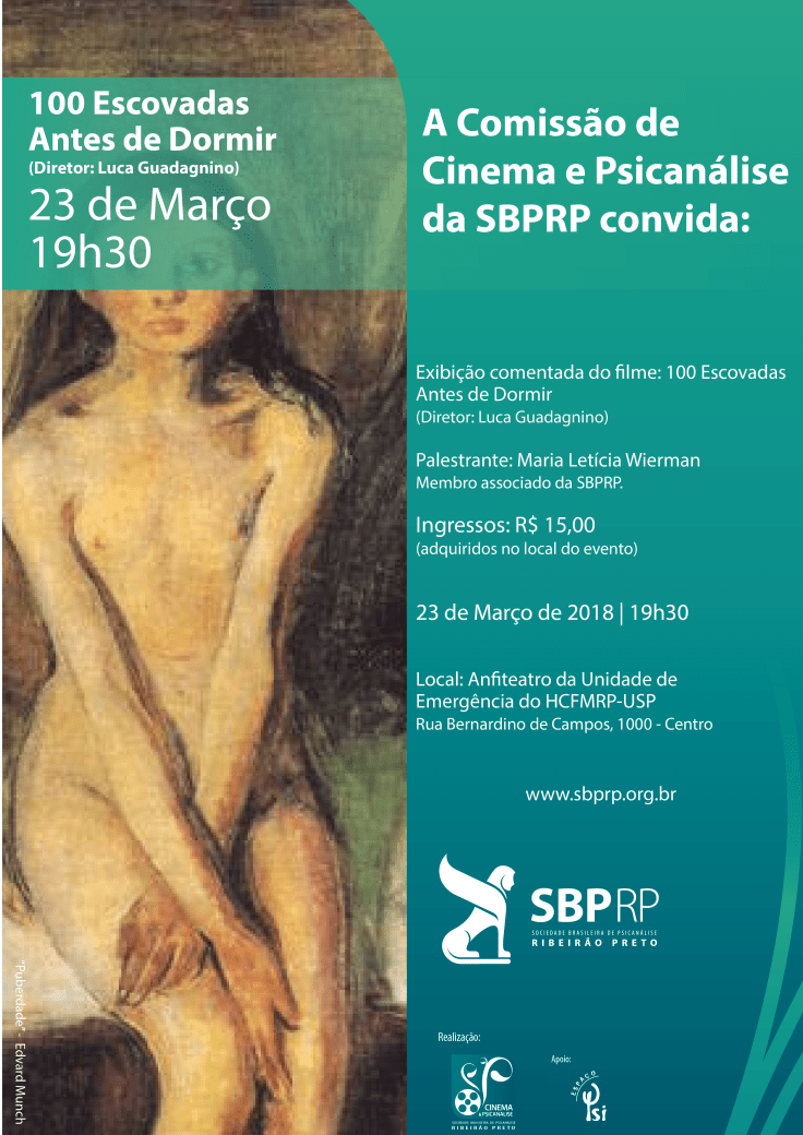 Convidamos vocês a participarem do nosso primeiro cinema & psicanálise deste ano, no dia 23 de março, às 19:30h, no Anfiteatro da UE do Hospital das Clínicas da Faculdade de Medicina da USP- Ribeirão Preto.