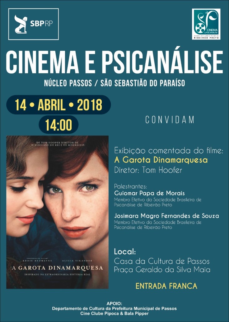 Amanhã, dia 14 de abril, será realizado o Cinema e Psicanálise em Passos, com o filme “A Garota Dinamarquesa”, comentários de Guiomar Papa de Morais e Josimara Magro Fernandes de Sousa. Saiba mais: