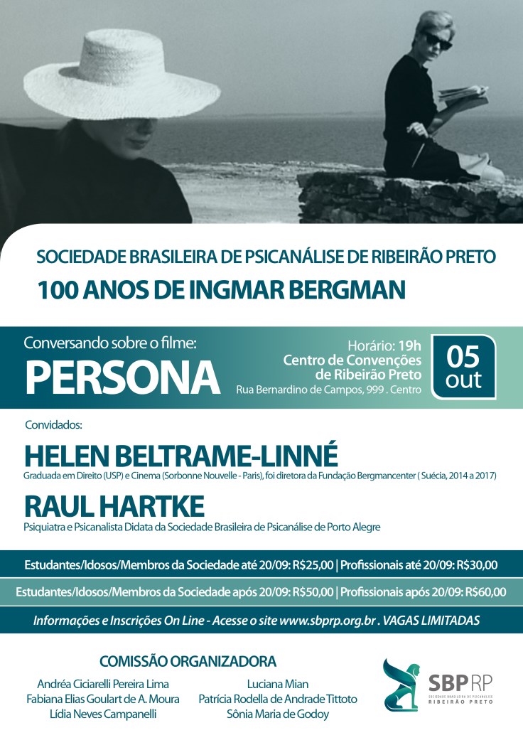 Em comemoração ao aniversário de 100 anos de Ingmar Bergman, a Sociedade Brasileira de Psicanálise de Ribeirão Preto irá realizar o evento Conversando sobre o filme “Persona”, com comentários de Helen Beltrame-Lineé e Raul Hartke.