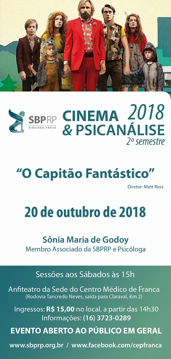 Neste sábado, dia 20 de outubro, o C&P de Franca irá apresentar o filme “Capitão Fantástico”, com comentários de Sônia Maria de Godoy, membro associado da SBPRP.
