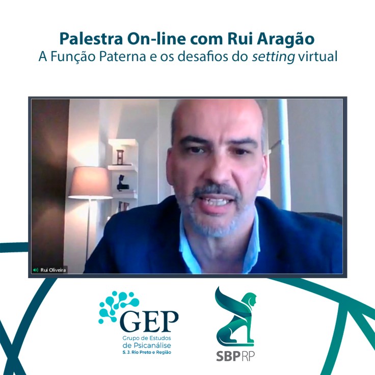 A SBPRP, em parceria com o GEP – Rio Preto, realizou no dia 29 de agosto o evento “A função paterna e os desafios do setting virtual”, convidando o psicanalista português Rui Aragão para apresentar seu pensamento a respeito do tema proposto. O evento encerrou a gestão da Diretoria Científica do biênio 2018-2020. Uma despedida programada para acontecer presencialmente, mas diante das adversidades trazidas pela pandemia, teve seu formato reformulado para on-line para que pudesse ser realizada e mantido o desejo de discutir o tema proposto ao psicanalista convidado.