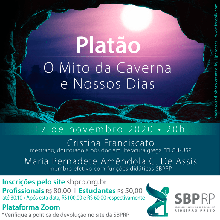 Aos amantes de mitologia, filosofia e psicanálise, apresentamos este evento preparado com primor! A ideia emergiu de uma brincadeira nas redes sociais que respondia à pergunta “o que diriam os filósofos a respeito desse momento que vivemos”? A Platão, a brincadeira atribuiu a frase “Não saiam da caverna”. Nós perguntamos: será que é isso mesmo que Platão diria? Contamos com a arte de unir imagens simbólicas tão vivas e pulsantes em nosso acervo imaginário e palavras que traduzam tais imagens em anseios e urgências nossas, despertados pela realidade que tanto nos desafia.