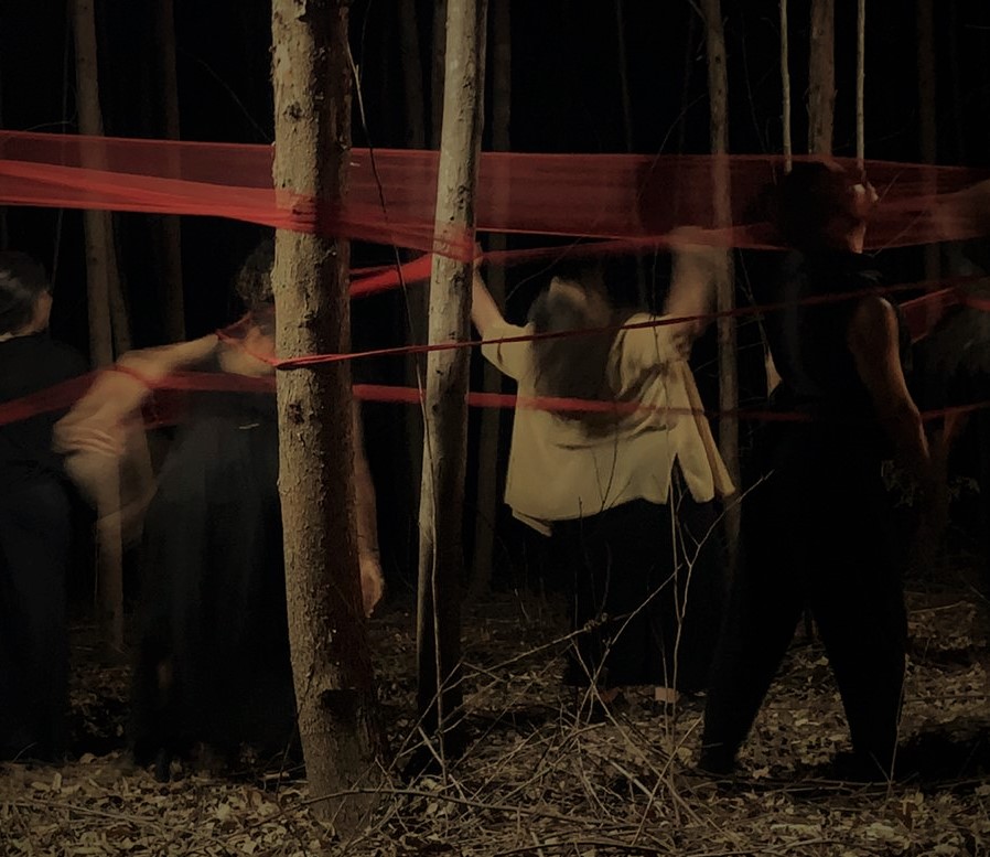 Na próxima Bienal, sete bailarinos dançam em plano aberto, numa floresta de eucaliptos, nos tirando de uma distração cotidiana, a qual exclui a possibilidade de reflexão sobre a banalidade do mal que nos permeia. Em muitos momentos, estão mascarados, a nos contarem sobre a falta de forma e a indiferenciação dos pensamentos, que iguala o humano em sua ausência de identidade e discernimento do hostil.