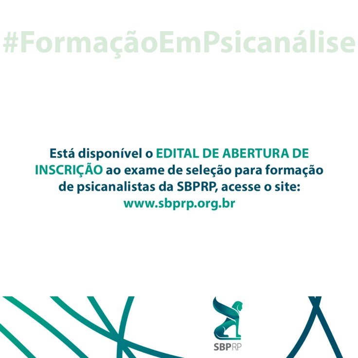 A SBPRP, entidade componente da Associação Internacional de Psicanálise (IPA), da Federação Psicanalítica da América Latina (FEPAL) e da Federação Brasileira de Psicanálise (FEBRAPSI), vem comunicar aos interessados que as inscrições para o exame de seleção para ocuparem até 18 vagas à formação de psicanalistas pelo seu Instituto de Psicanálise estarão abertas do dia 20 de janeiro até 26 de fevereiro de 2021.
