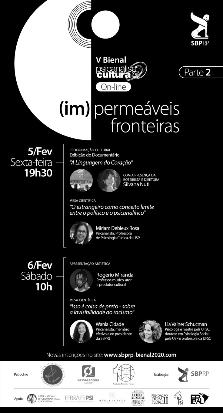Estas e outras instigantes perguntas são para pensar as questões pertinentes à nossa proposta da V Bienal, lembrando a interface entre Cultura e Psicanálise contida na concepção do evento.