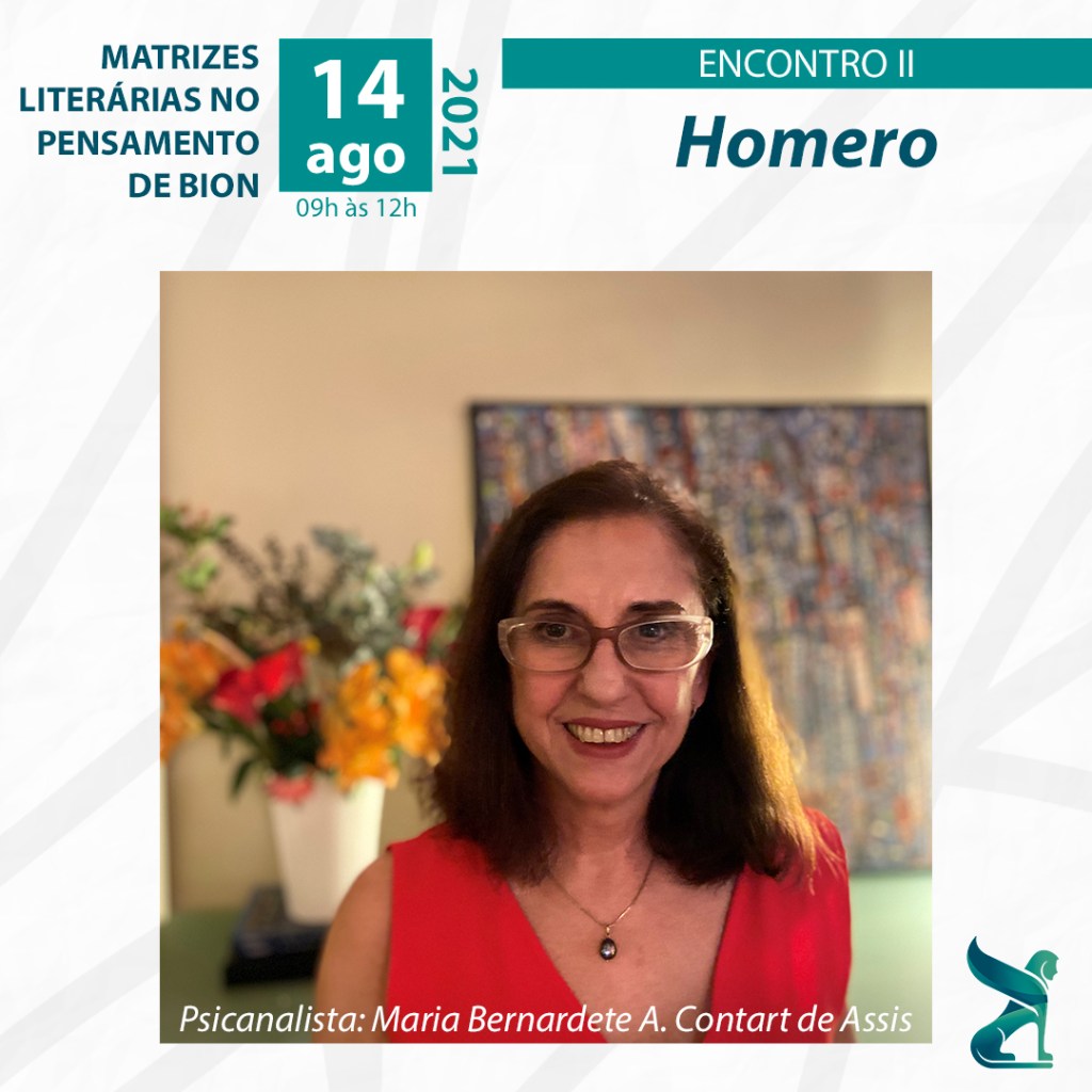 Pra fechar com chave de ouro o nosso trio de palestrantes de “Homero” – Matrizes Literárias no Pensamento de Bion, teremos a presença da psicanalista Maria Bernadete A. Contart de Assis.