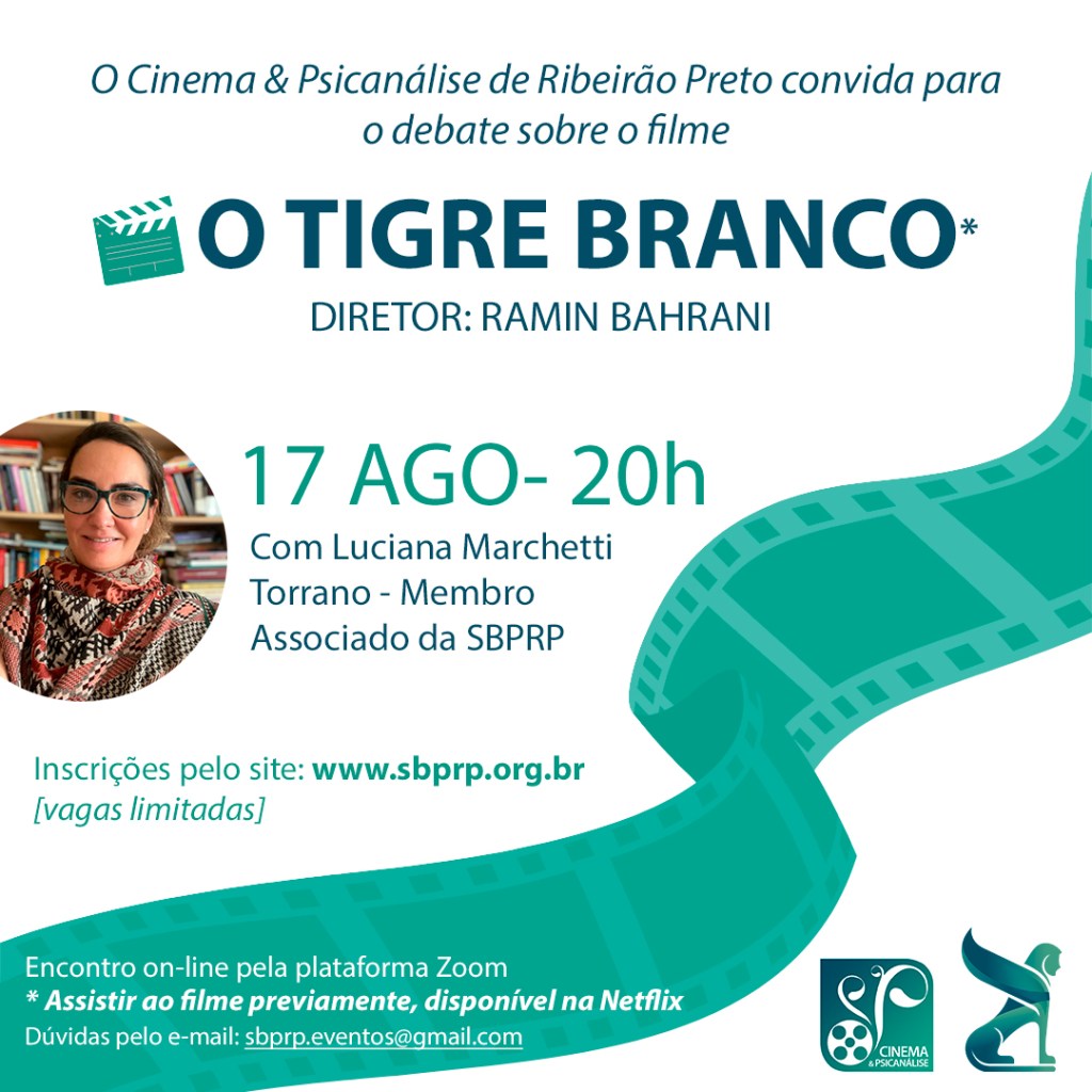 Estaremos juntos com a colega Luciana Marchetti Torrano, membro associado da SBPRP, que comentará sobre o filme “O Tigre Branco”, do diretor Ramin Bahrani.
