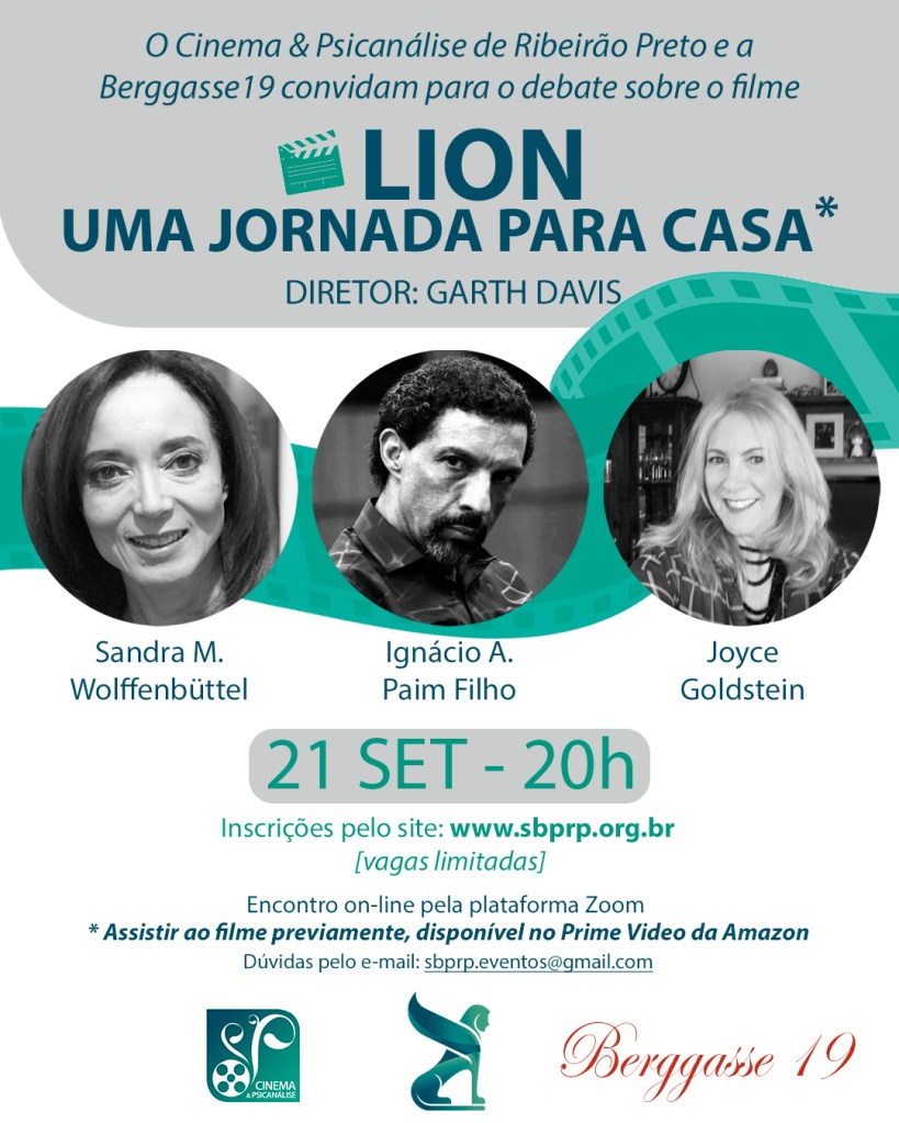 O Cinema & Psicanálise de Ribeirão Preto, em parceria com a Revista Berggasse 19 da SBPRP, promovem um encontro especial para um debate do filme Lion: uma jornada para casa. O filme conta a história de Saroo, um menino indiano de cinco anos de idade que se perde do irmão mais velho numa estação de trem, na cidade de Calcutá. Depois de sobreviver ao enfrentamento solitário dos riscos e ameaças sofridos, ele é adotado por um casal australiano. Após 25 anos, angustiado com a própria história, Saroo sai em busca de suas origens.