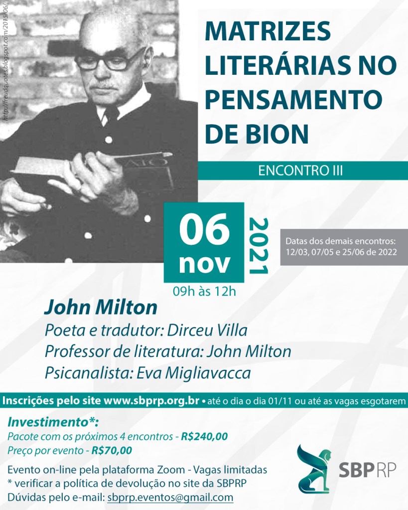 Hoje é o último dia para se inscrever para o Encontro III de “As Matrizes Literárias no Pensamento de Bion”!