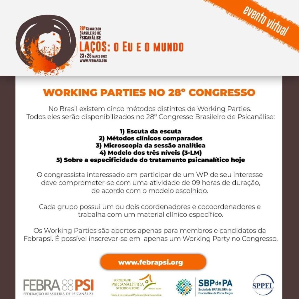 Os WP são abertos apenas para membros e candidatos da Febrapsi. É possível inscrever-se em somente um Working Party.