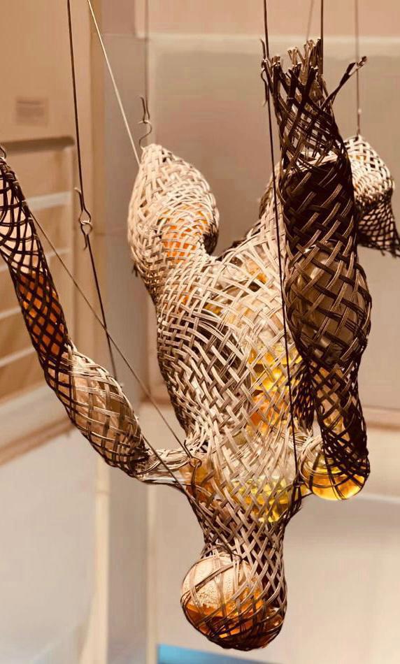 Tunga nos abraça e nos apresenta suas tranças, mistura diversos materiais como cobre, carvão e resinas que parecem ossos humanos, os movimentos e as texturas em suas obras e instalações hipnotizam e produzem no visitante um terceiro, um produto do diálogo com suas criações. As tríades pai, mãe e filho, ou a bengala do Édipo encontram espaço meio aos inúmeros signos espalhados pelos pavimentos do centro cultural.
