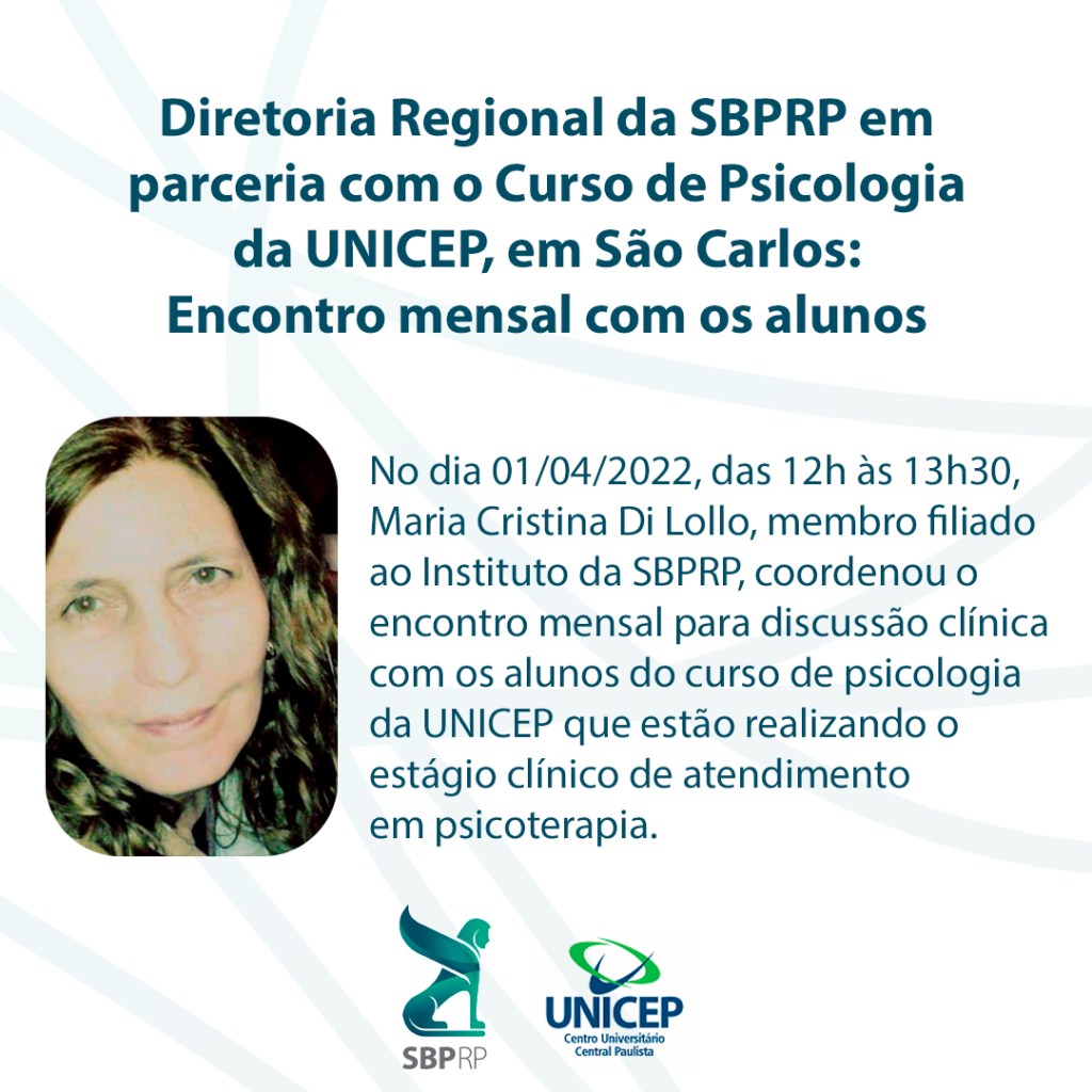 O projeto é organizado e coordenado pelo Prof. Rafael Diniz de Lima, professor e supervisor de estágio clínico do curso de psicologia de UNICEP e por Silvana Mara Lopes Andrade, membro da comissão da Diretoria Regional da SBPRP.