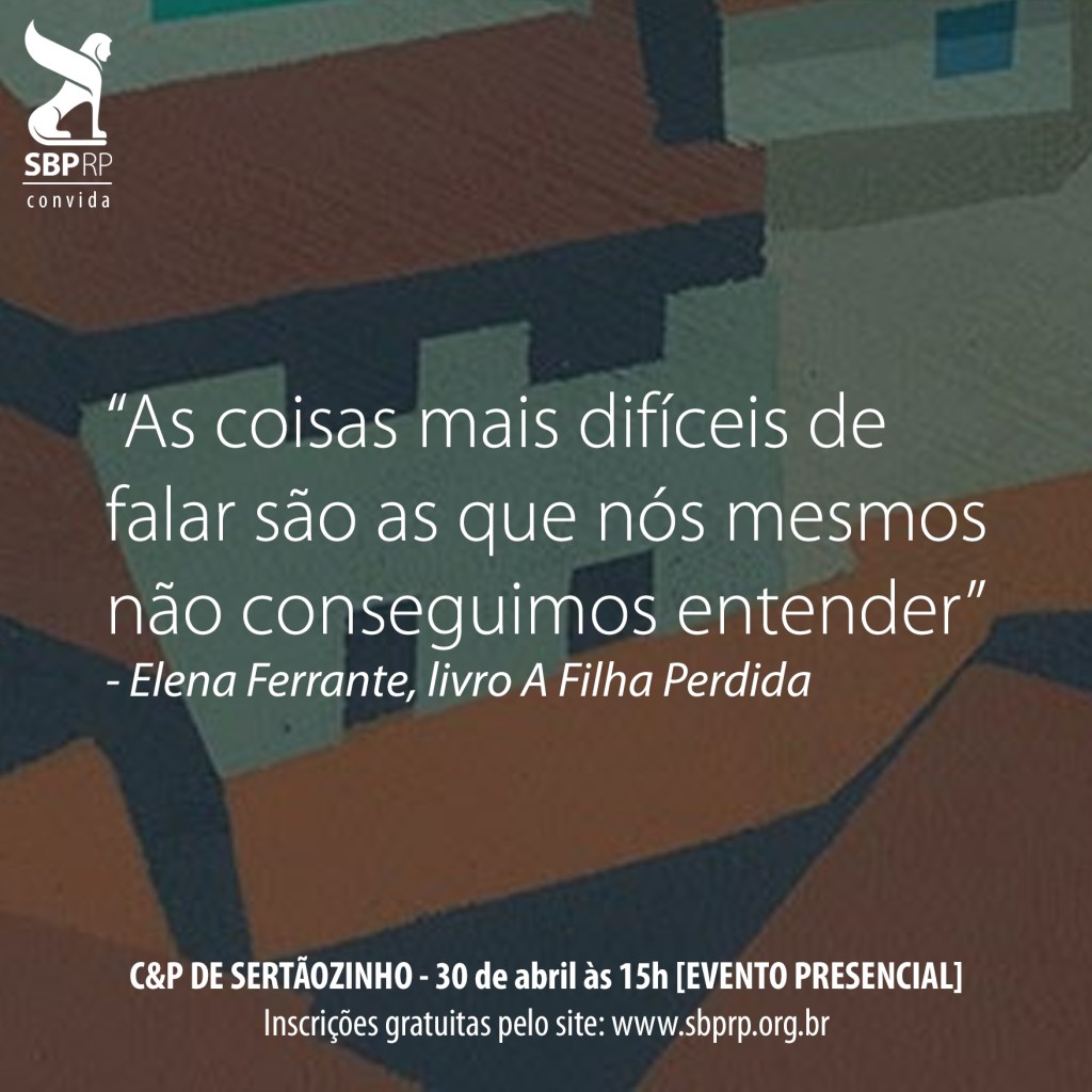 “As coisas mais difíceis de falar são as que nós mesmos não conseguimos entender”, com a reflexão deixada por Elena Ferrante, autora do livro “A Filha Perdida”, Edna S. Magro deixa o seu convite para o primeiro encontro do Cinema & Psicanálise de Sertãozinho.