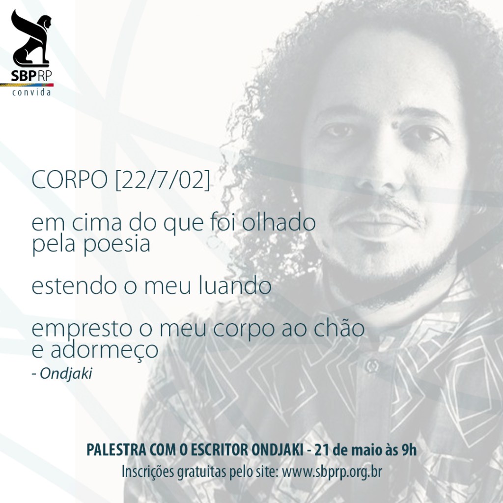 Com essa poesia do escritor angolano Ondjaki a Comissão de Escrita da SBPRP convida a todos para participarem da palestra “Os caminhos da literatura e da história de Angola”, que acontecerá no dia 21 de maio, das 9h às 11h.