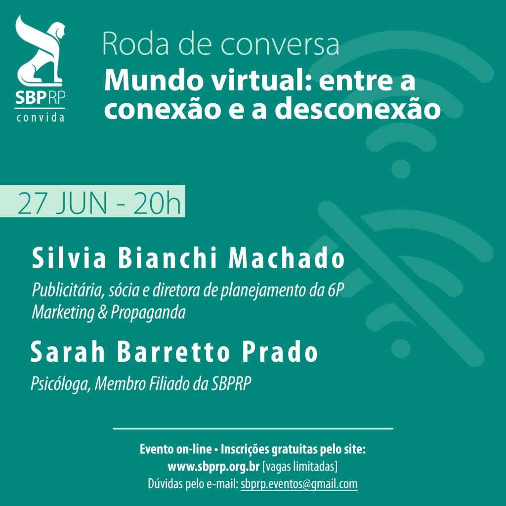 A Diretoria de Cultura e Comunidade da SBP/RP convida você de diferentes áreas (humanas, exatas, saúde, comunidade em geral), interessados em conversar conosco suas vivências e experiências entre a conexão e a desconexão.