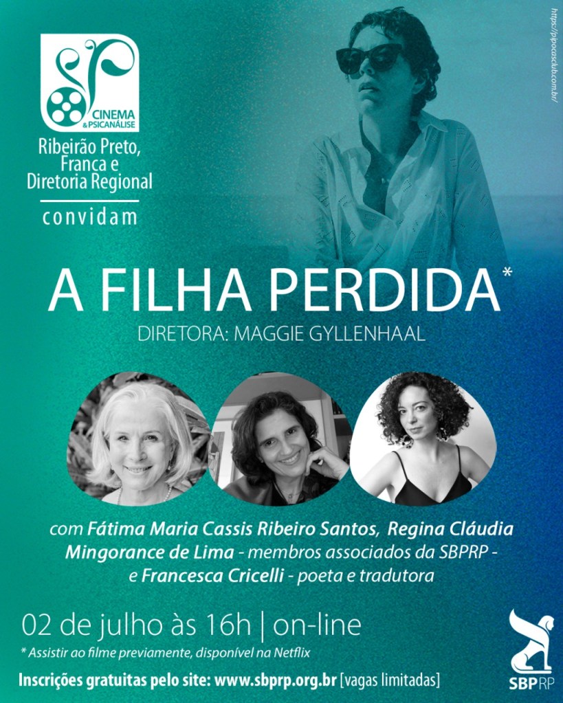 Os comentários sobre esse instigante filme, que mergulha de forma visceral no universo feminino e nos conflitos relativos à maternidade, serão realizados através de vários vértices, com a participação de Francesca Cricelli, poeta e tradutora literária (traduziu um dos livros da autora Elena Ferrante) e das psicanalistas Fátima Maria Cassis Ribeiro Santos e Regina Cláudia Mingorance, Membros Associados da SBPRP.