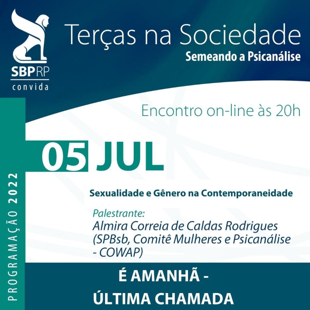 ▶ Nesta terça-feira, 5 de julho, às 20h, você tem um encontro marcado com a SBPRP para o evento Terças na Sociedade – Semeando a Psicanálise.