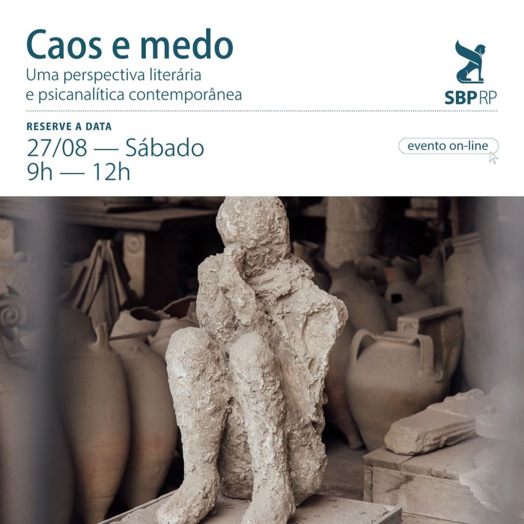 A Diretoria Científica da SBPRP convida para o encontro on-line com o tema “Caos e Medo: uma perspectiva literária e psicanalítica contemporânea”. Será um encontro aberto e receberemos com carinho os colegas psicanalistas e os estudantes interessados. Nossos convidados serão Júlio Conte e Natalia Timerman.