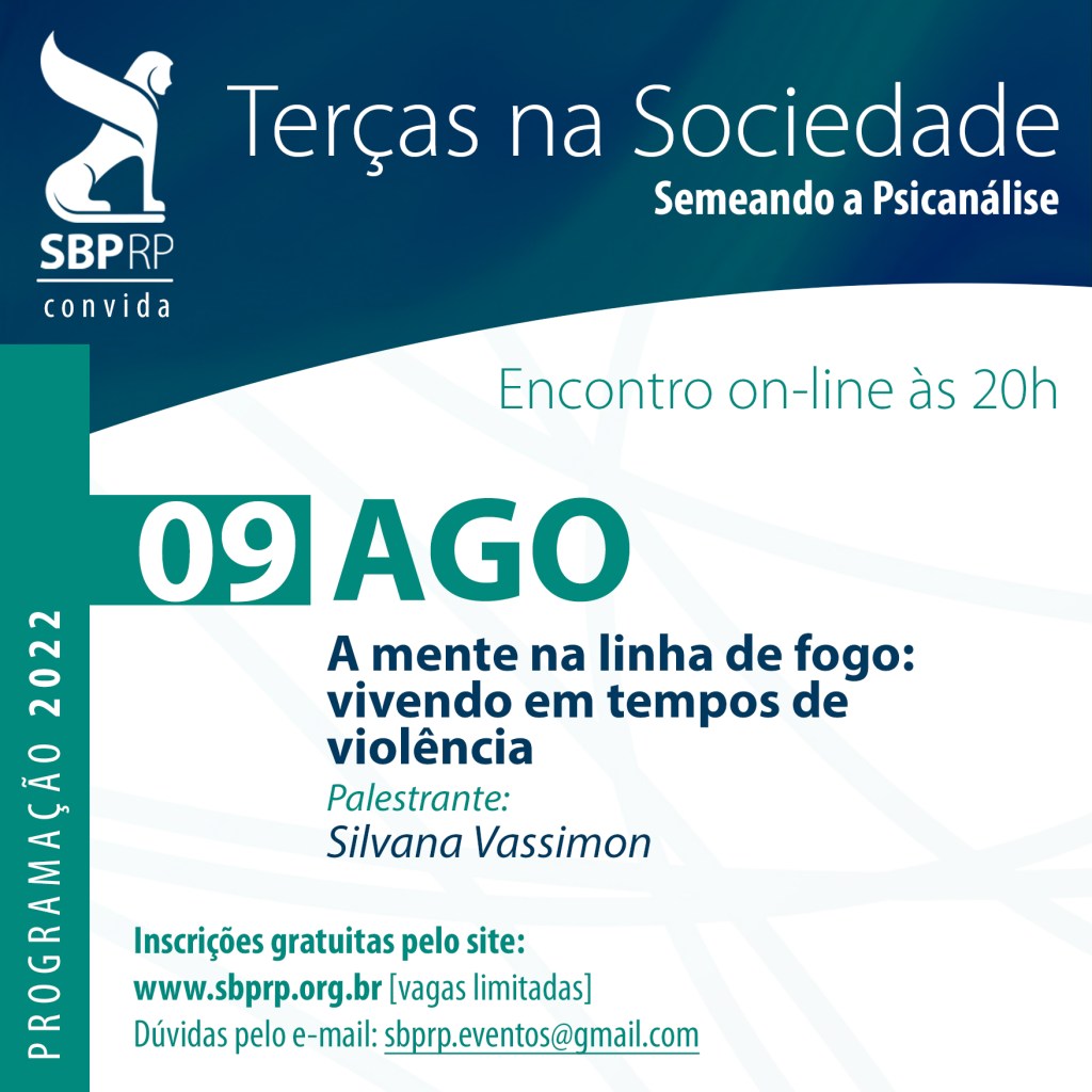 No próximo dia 9 de agosto, às 20h, a SBPRP realizará mais uma edição do “Terças na Sociedade – Semeando a Psicanálise”.