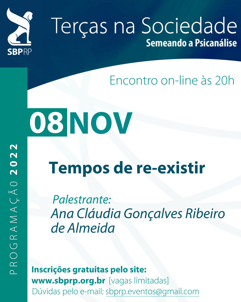 O tema dessa edição será “Tempos de re-existir”. Quem comandará a discussão será Ana Cláudia Gonçalves Ribeiro de Almeida.