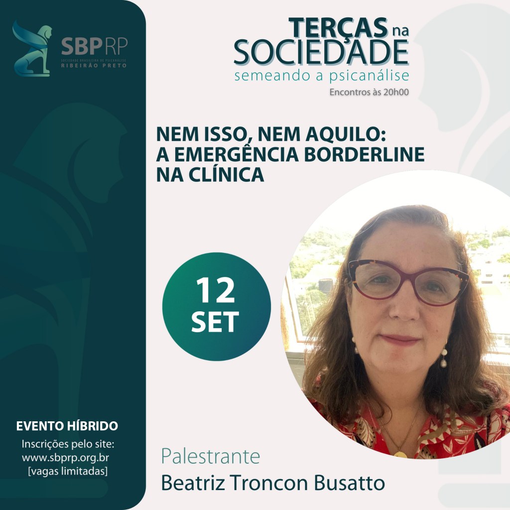 Está se aproximando o próximo encontro do Terças na Sociedade, cujo tema é: NEM ISSO, NEM AQUILO: A EMERGÊNCIA BORDELINE NA CLÍNICA.